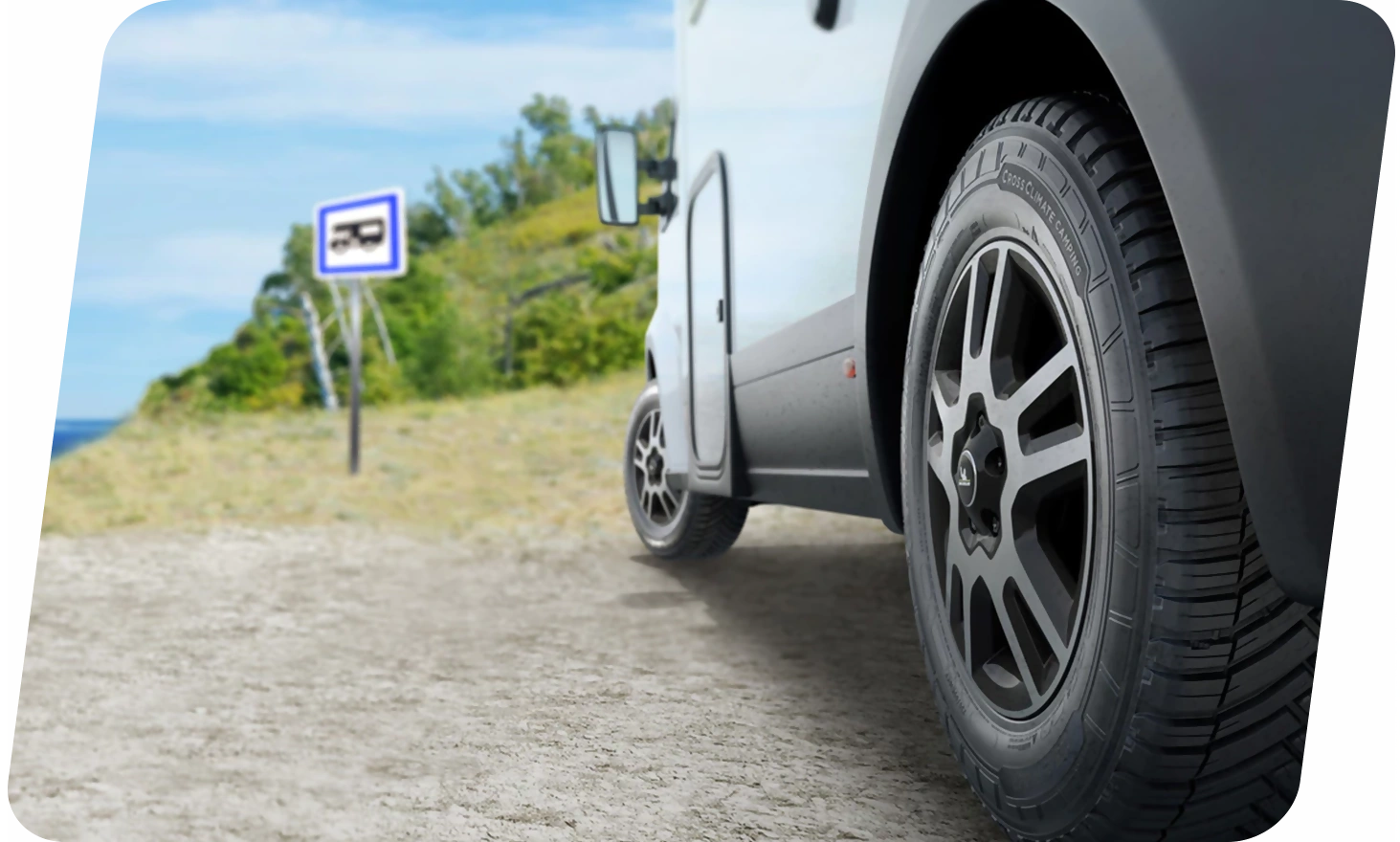 Not all tyre brands manufacture campervan tyres – with the highest quality tyres coming from premium brands like Michelin and Continental. In terms of exact models, some of the highest recommended tyres for campervans include the Michelin CrossClimate Camping Van tyres, the Hankook RA28E tyres, and the Continental tyre Vanco Camper range.